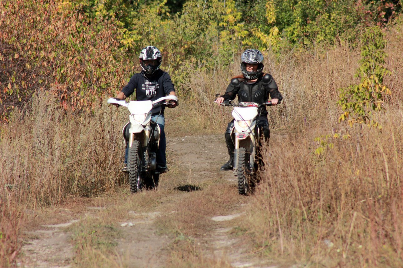 На базе тебя встречают и спокойно экипируют: шлем, куртка, перчатки, наколенники — без суеты. Десять минут на ограждённой площадке, и ты чувствуешь сцепление Kayo KRZ125, ловишь баланс, понимаешь, как работает газ и тело. Инструктор рядом, подскажет и подстроит темп. Новичкам и опытным заходит катание на эндуро по рельефной тропе. Если тянет глубже в живую природу, можно покататься на байке для пересечёнки — по полям, косогорам и подъёмам. Для полного погружения в ритм грунта выбери катание на оффроуд-мотоцикле с понятными подсказками. Хочешь ехать вдвоём? Отлично: у нас два одноместных мотоцикла — выходите парой, держите темп и кайф по-взрослому.